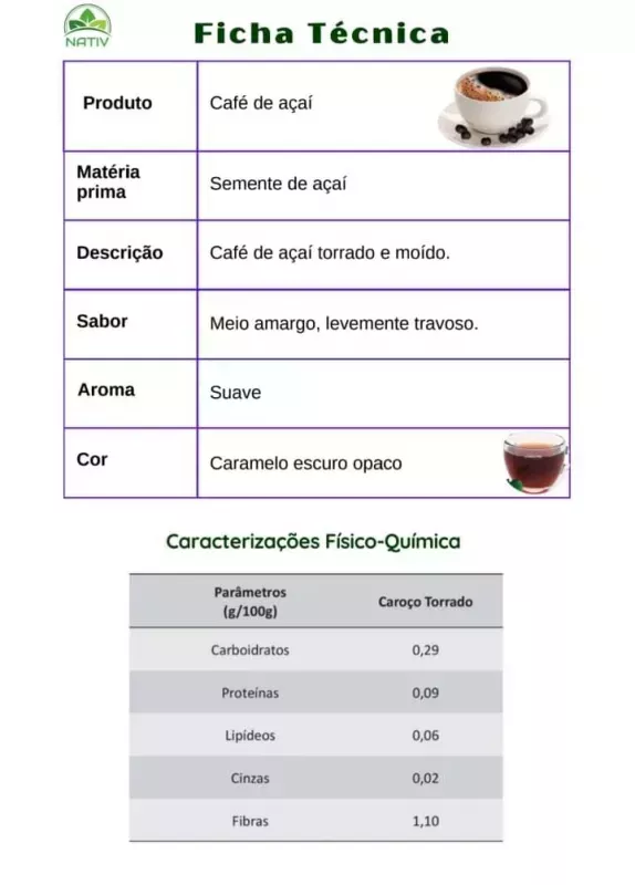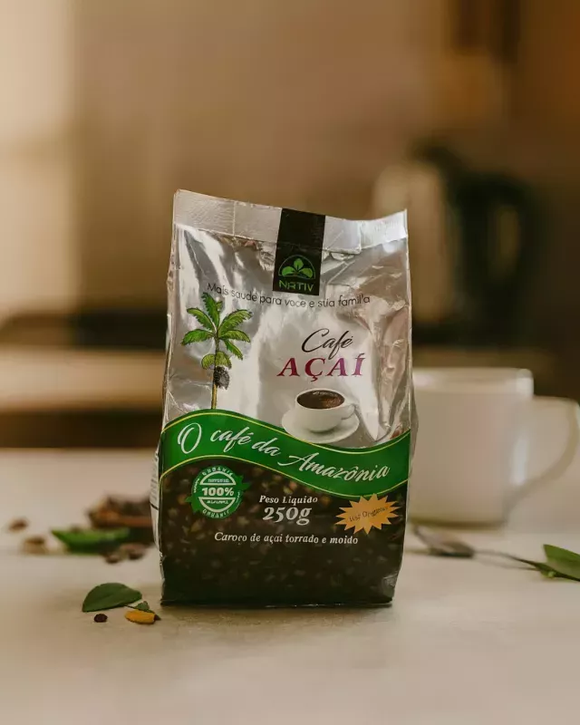 Desfrute do sabor autêntico da Amazônia com o Café de Açaí NATIV. 100% natural, torrado e moído, sem cafeína, perfeito para toda a família. Orgânico, nutritivo e delicioso!