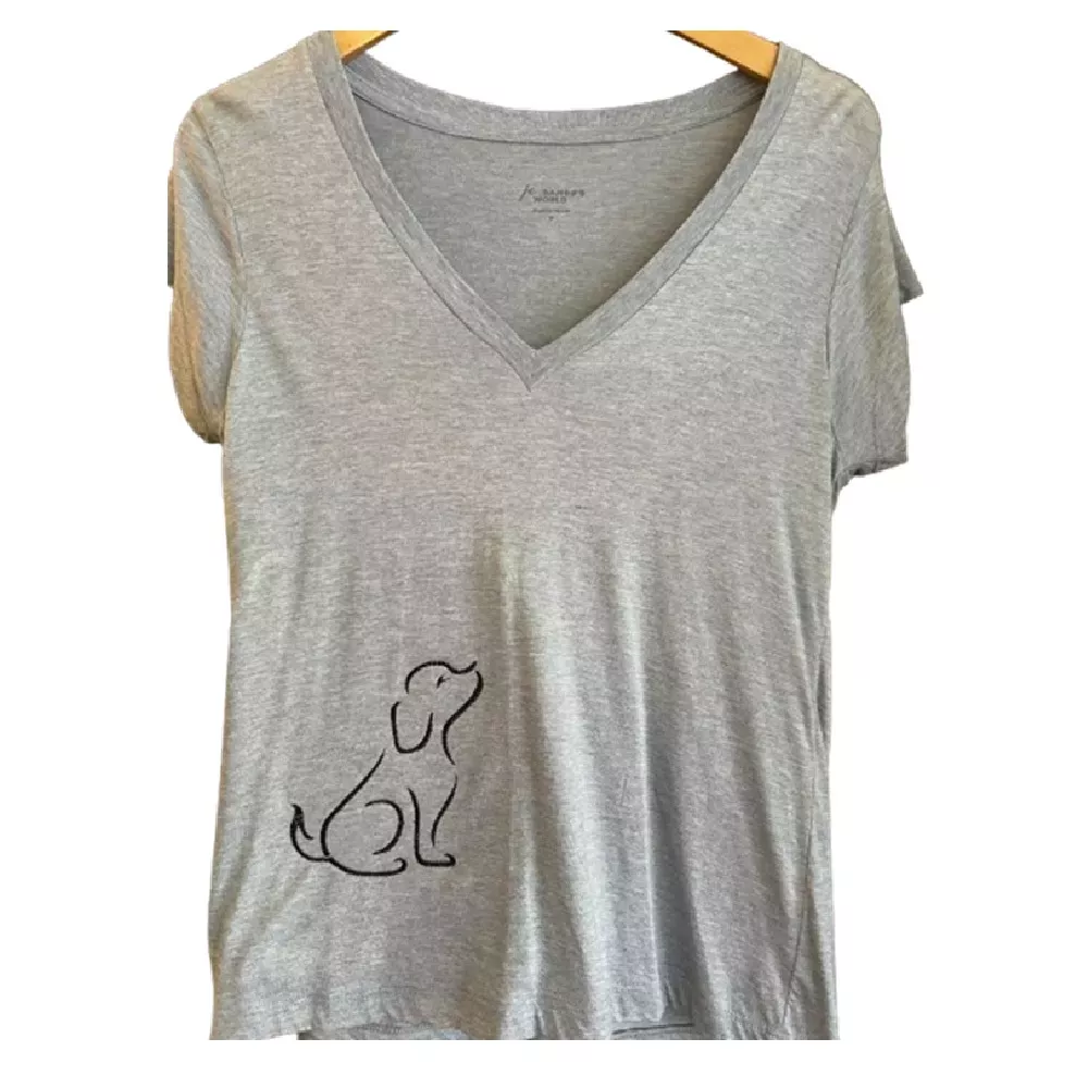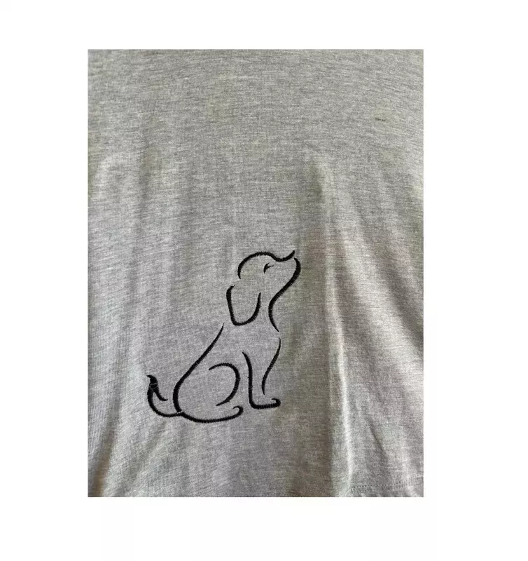 Camiseta Viscose de Bambu Feminina Cinza Mesclado Cao Bordado V
