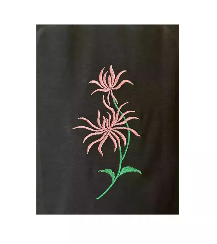 Camiseta Viscose de Bambu Feminina Preta Flor Bordada V